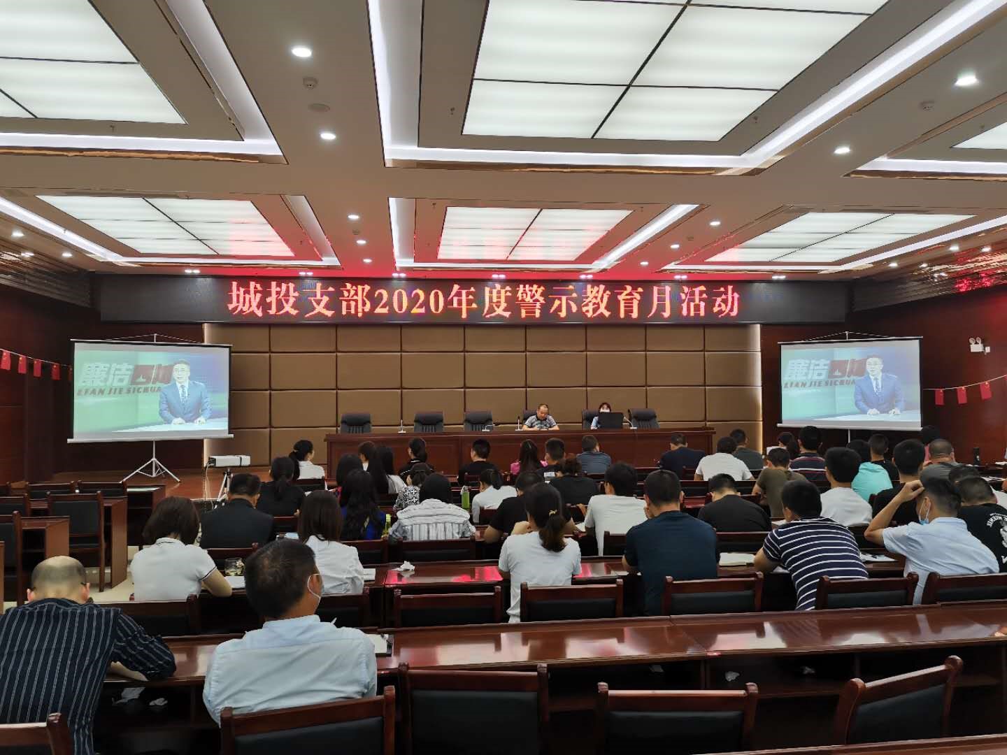 2020年5月22日,城投支部召集支部全體黨員、中層及以上領(lǐng)導(dǎo)干部、重點(diǎn)崗位人員開展2020年度警示教育月活動(dòng)。