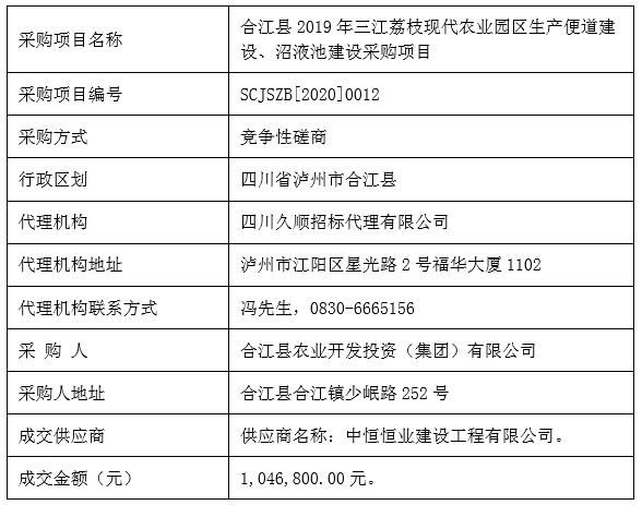 合江縣2019年三江荔枝現(xiàn)代農業(yè)園區(qū)生產便道、沼液池建設采購項目競爭性磋商成交公告