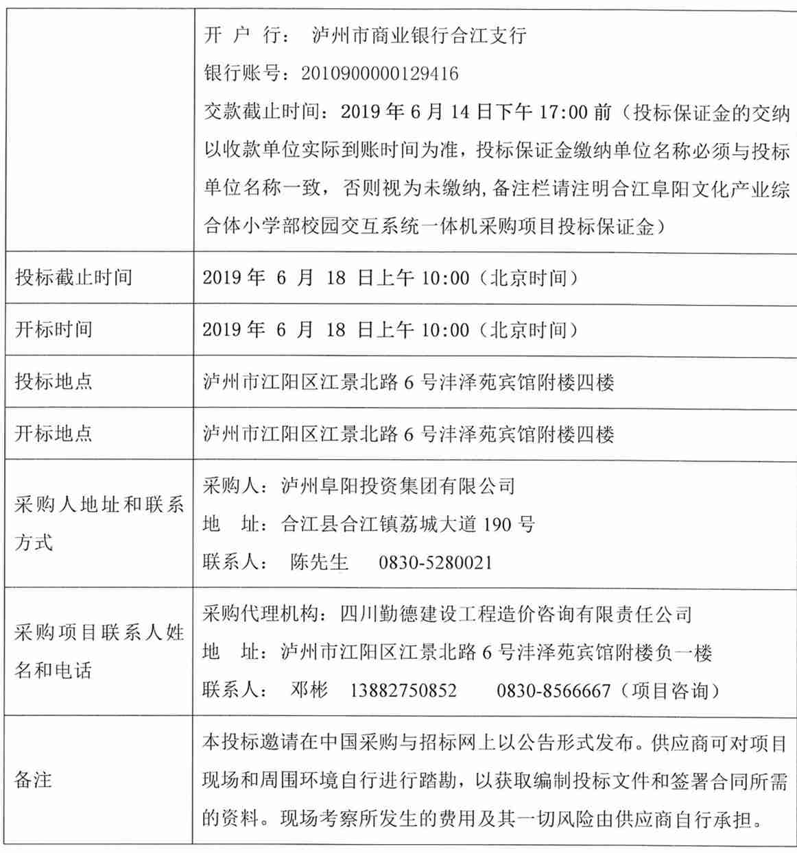 合江阜陽文化產(chǎn)業(yè)綜合體小學(xué)部校園交互系統(tǒng)一體機(jī)采購公告