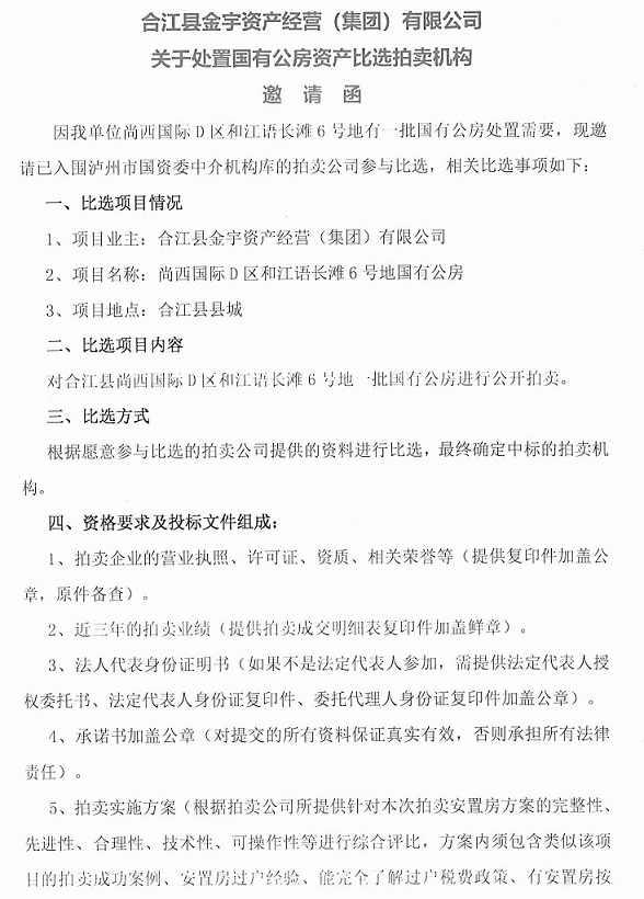 關(guān)于金宇公司處置國有公房資產(chǎn)比選拍賣機構(gòu)的公告