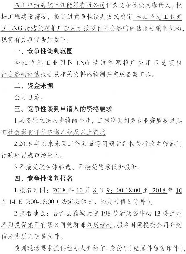 合江臨港工業(yè)園區(qū)LNG清潔能源推廣應(yīng)用示范項目社會影響評估單位競爭性談判公告.docx