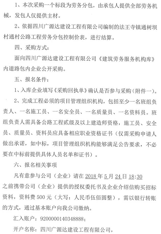 四川廣源達(dá)建設(shè)工程有限公司法王寺鎮(zhèn)通樹壩村通村公路工程勞務(wù)分包企業(yè)采購(gòu)公告.doc