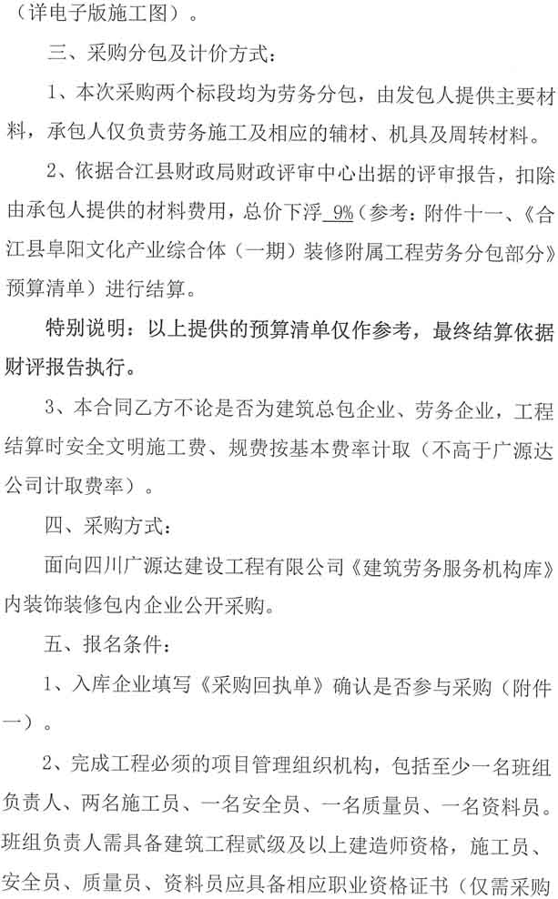阜陽文化產(chǎn)業(yè)綜合體(一期)裝修附屬工程勞務(wù)分包企業(yè)采購公告.docx