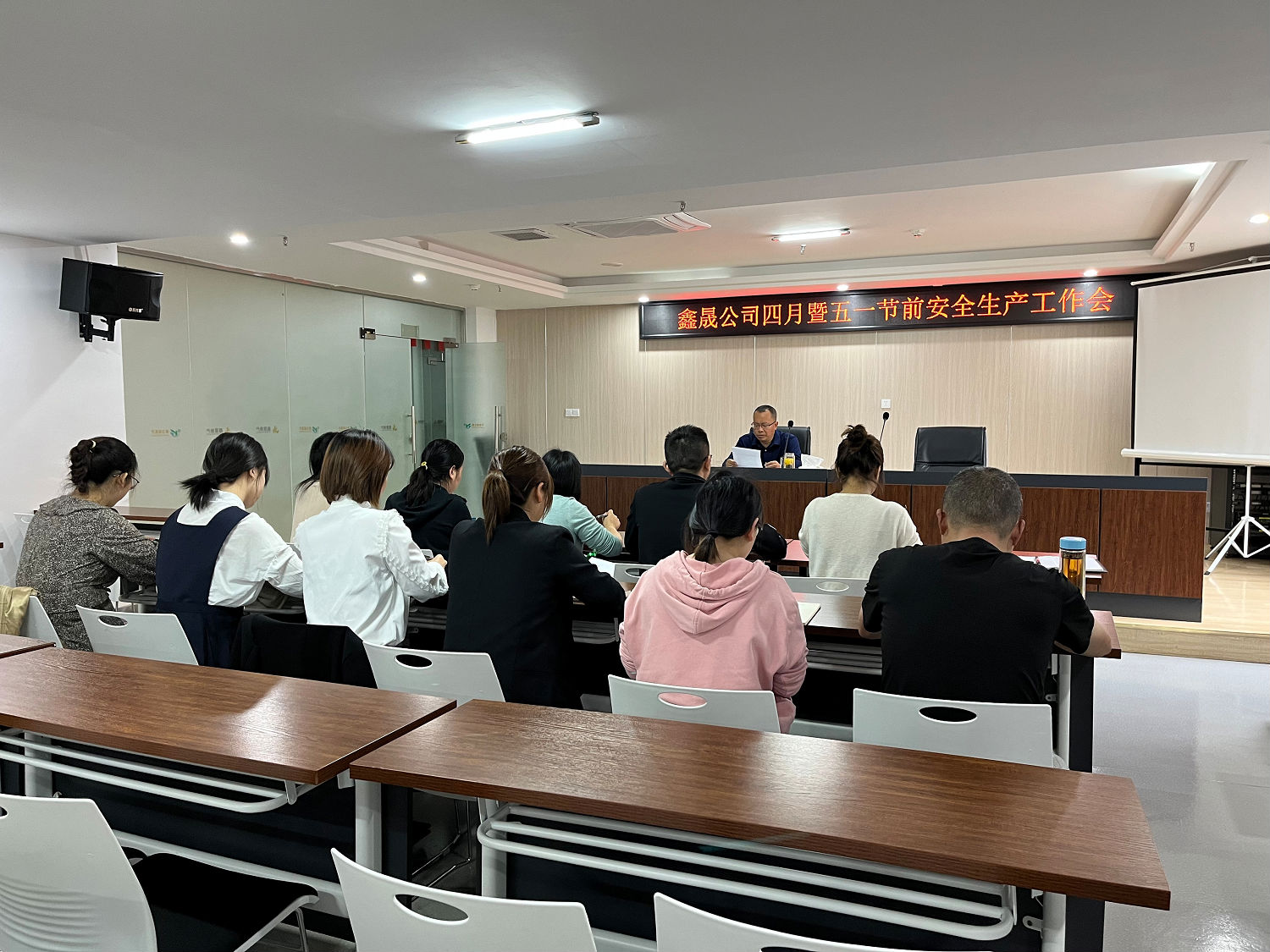 2022 年 4 月 28 日,瀘州鑫晟房地產(chǎn)開發(fā)有限公司組織召開 四月暨“五一” 節(jié)前安全生產(chǎn)工作會,會議由董事長任東財主持, 公司全體員工參加。