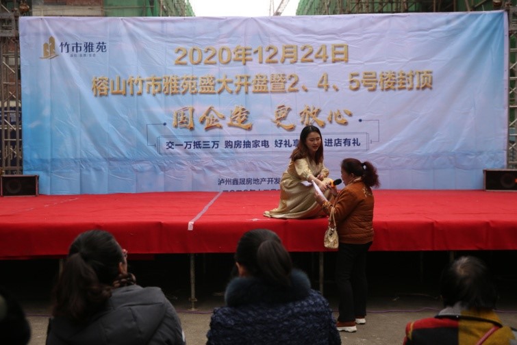 2020年12月24日上午,鑫晟地產(chǎn)公司在竹市雅苑售房部現(xiàn)場隆重舉行項(xiàng)目開盤暨2、4、5號(hào)樓封頂活動(dòng)。豐富多彩的節(jié)目表演、精彩有趣的有獎(jiǎng)問答吸引了周邊群眾觀看、參與。 此次活動(dòng)達(dá)到了很好的宣傳造勢(shì)效果,使“國企造,更放心”深入人心。