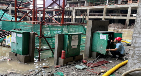 2020年7月16日傍晚,合江縣突發(fā)大暴雨,為防范安全隱患,我司積極組織施工單位和監(jiān)理單位展開安全排查,重點排查了塔吊、施工電梯、電箱、基坑、地下室等易積水的高危地點,確保安全施工。