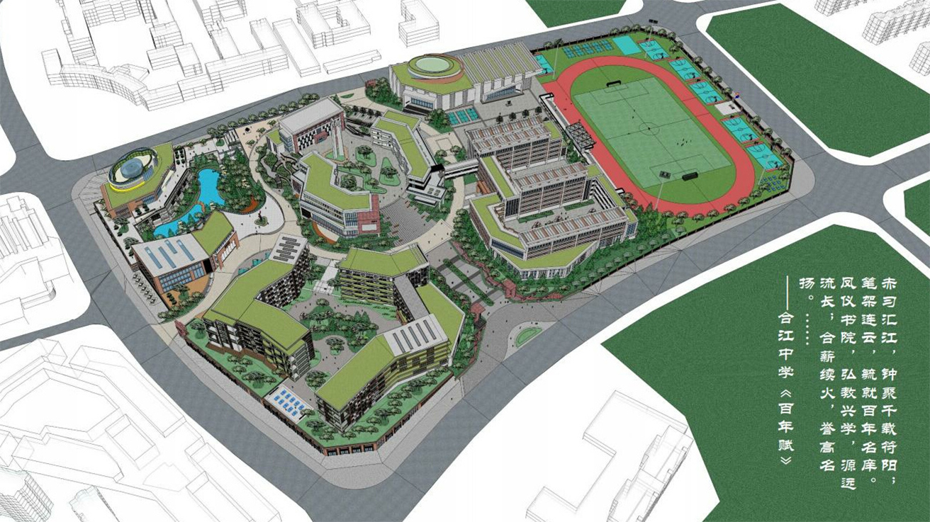 建設(shè)規(guī)模:合江縣中學(xué)校江北新校區(qū)建設(shè)項(xiàng)目,總規(guī)劃用地面積300畝,總建筑面積94300平方米,辦學(xué)規(guī)模8000人,設(shè)置高中120個(gè)班。