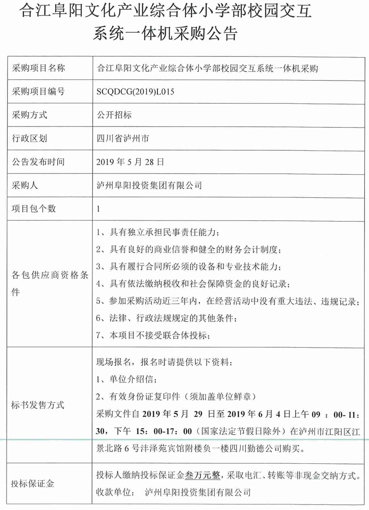 合江阜陽文化產(chǎn)業(yè)綜合體小學部校園交互系統(tǒng)一體機采購公告