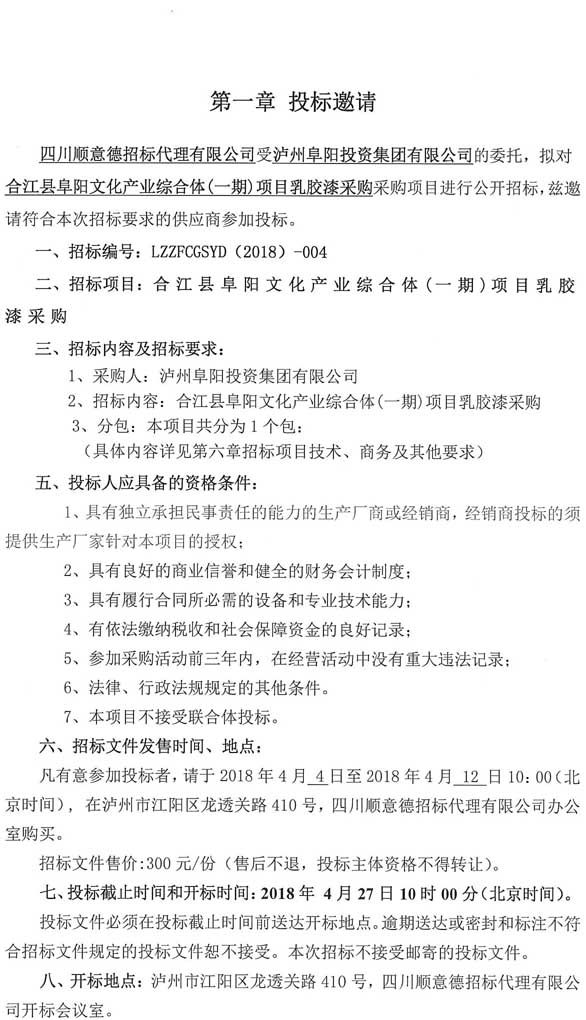投標(biāo)邀請:合江縣阜陽文化產(chǎn)業(yè)綜合體(一期)項(xiàng)目乳膠漆采購