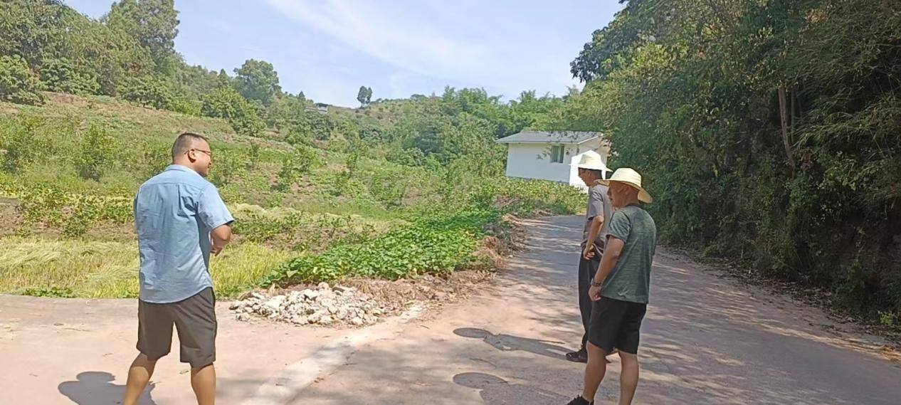 鳳鳴片區(qū)負(fù)責(zé)人陳裕寧會同水務(wù)局、 設(shè)計單位確定鳳鳴鎮(zhèn)大 茅山供水站進(jìn)廠公路