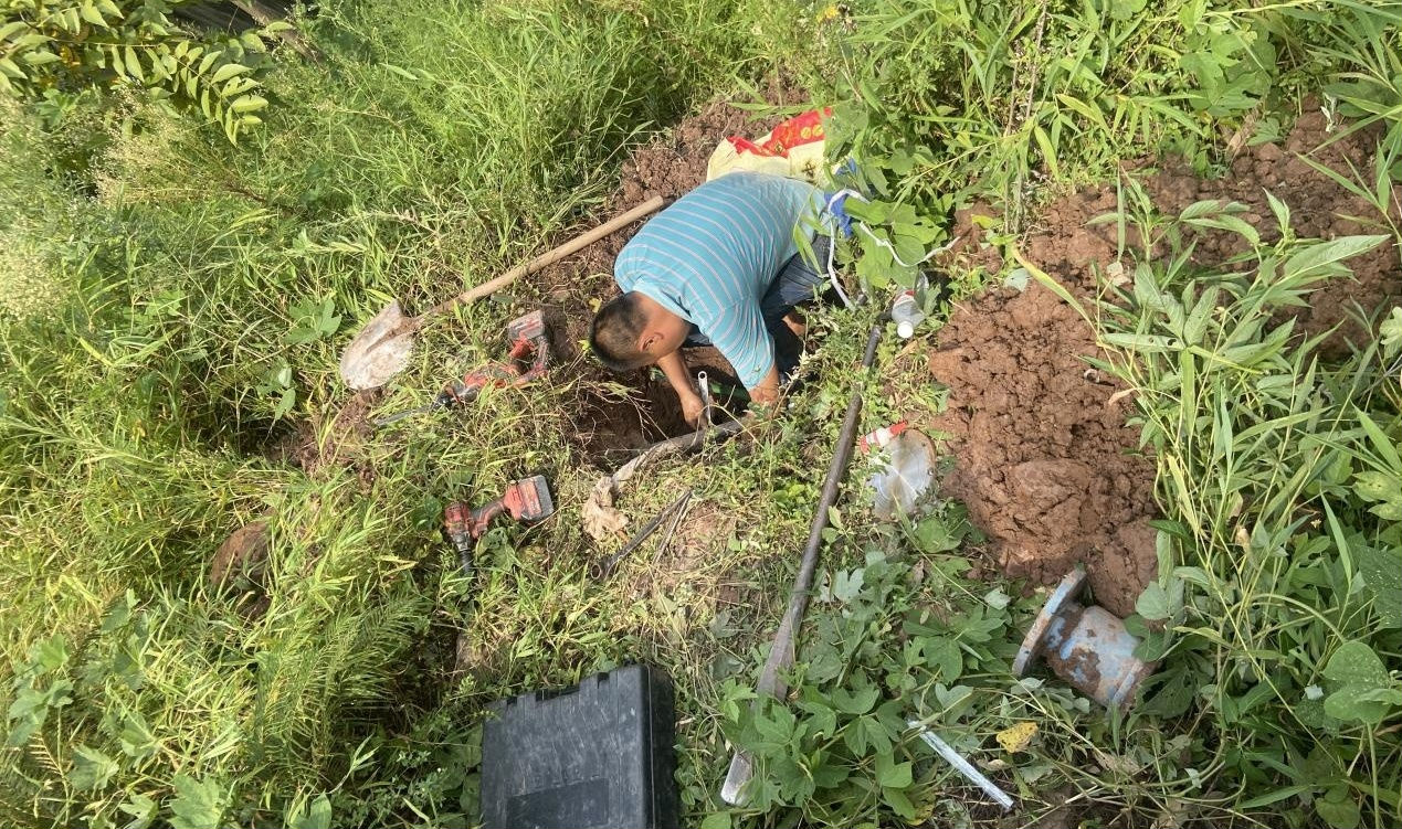 8 月 19 日上午 7 點(diǎn) 40 分鳳鳴片區(qū)負(fù)責(zé)人陳裕寧帶隊(duì)查看陽 棚垇私拉亂接現(xiàn)場,預(yù)防后段用水戶無法正常供水