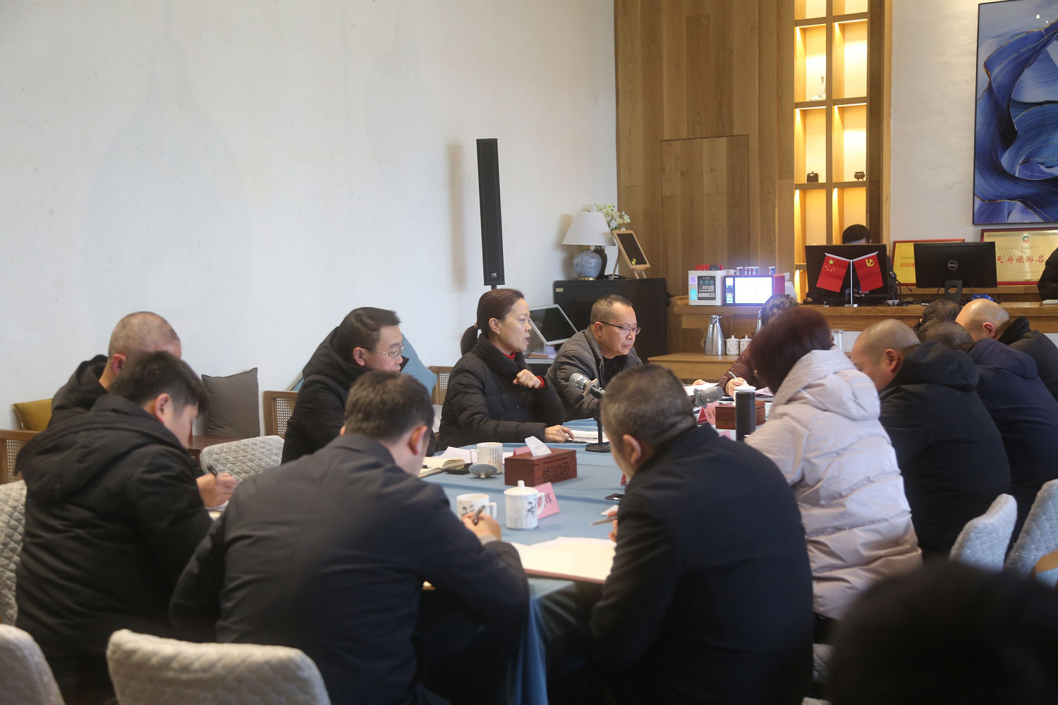 游啟君一行先到景區(qū)天街進(jìn)行現(xiàn)場勘查, 詳細(xì)了解了景 區(qū)工程進(jìn)度及預(yù)期運營方向, 隨后在法王寺龍掛山景區(qū)—半 山云舍召開了座談會。 會上, 集團公司領(lǐng)導(dǎo)對景區(qū)前期建設(shè)、 運營工作給予了充分肯定, 并鼓勵文旅公司員工要繼續(xù)鉚足 干勁、整合力量來加快項目建設(shè),力爭早日全部投入運營。